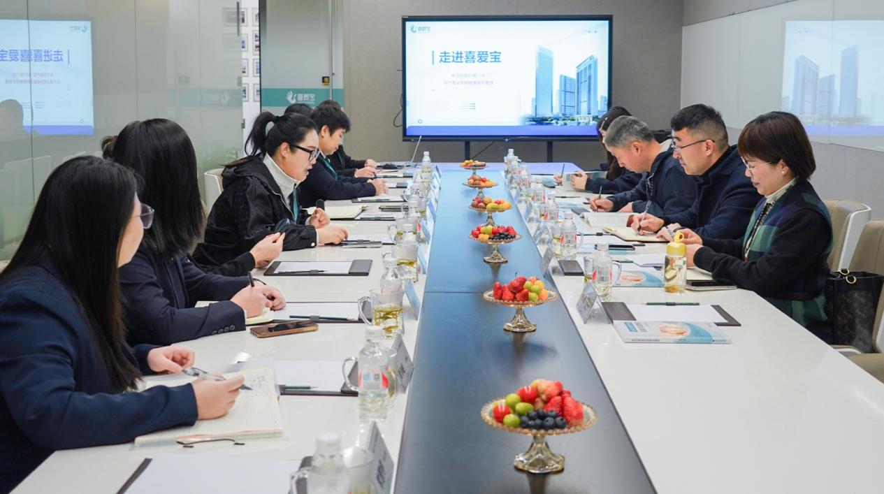 翟轩逸对冯新红一行表示了欢迎,介绍了喜爱宝医院陪护、住家月嫂、育儿嫂、新生儿摄影、产后康复、技能培训六大主要业务板块的发展情况。