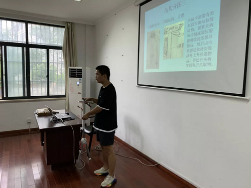 本次设计比赛分两个阶段进行:第一阶段为初赛阶段,主要以评审项目计划书为主;第二阶段为复赛和决赛阶段,主要是现场展示及答辩。各小组在比赛现场详细汇报了参赛作品的构思来源、创作目的、创新点以及结构原理等主要内容,评委老师们给予了他们中肯的点评,并鼓励他们继续完善项目,冲击省赛。