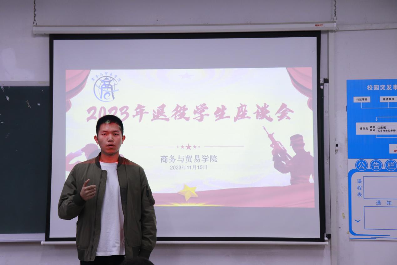 为进一步做好退役复学大学生教育管理工作,为他们创造良好的学习、生活、成长环境,加强在校退役士兵大学生思想政治引领,发挥退伍大学生的先锋模范作用,商务与贸易学院于近日在第一教学楼1114室召开了退役士兵学生座谈会。40位2022级、2023级退役士兵大学生参加了座谈会,会议由学院党总支副书记高计龙主持,党总支书记过芹芹出席本次座谈会并讲话。